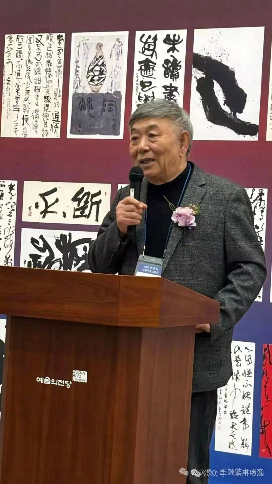 中方代表范振海先生就当代中国成人书法教育现状进行发言。他在充分肯定中国成人书法教育呈现前所未有的发展态势的同时,也提出了当代人急功近利现象普遍存在。