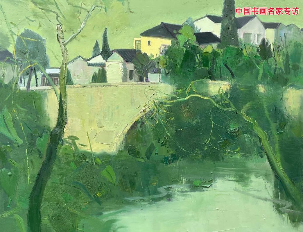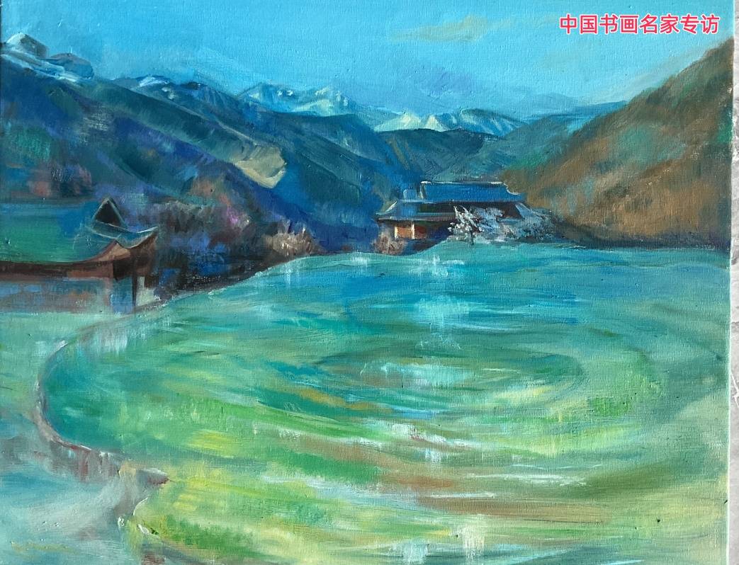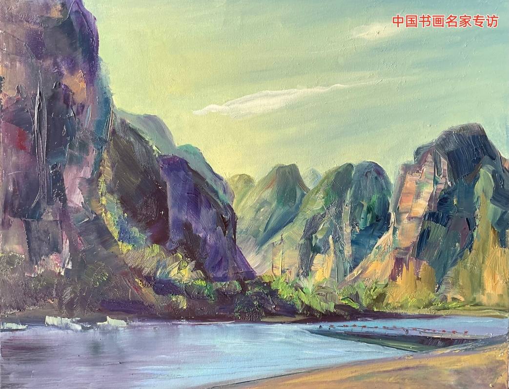 她描绘的山水,呼吸着东方的气韵,又流淌着油彩的浑厚。远山含黛,不是简单的渐层,而是无数细微色调的交织吟唱;近水粼粼,笔触间可见光影嬉戏的痕迹。她将中国山水画中“可游可居”的意境,与西方油画对空间、质感的追求巧妙融合,创造出既具实感、又富诗意的精神栖所。