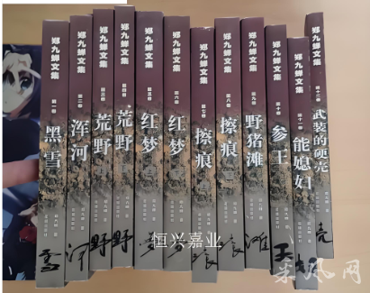 郑九蝉先生今年56岁,1949年生于宁溪上郑村。1969年到黑龙江省绥滨县插队,1977年上佳木斯师范专科学校。1984年回台州黄岩任文联主席1985年上鲁迅文学院作家班。以后在台州的报社,宣传部等地任职。由于他下乡到黑龙江又在佳木斯上过学,我的心中便不由的升出一种亲近的感觉。因为我就是黑龙江佳木斯人。这次我就是以第二故乡人的身份访问他的。落座后他从带来的拎兜里拿出一大摞子他刚刚出版的《郑九蝉文集》送给我这东北老乡留作纪念,并在第一卷上认真地签上了“郝连成先生阅郑九蝉”让我的心里很是感动。我大致的看了一下有12卷之多。是他这么多年的力作结晶。