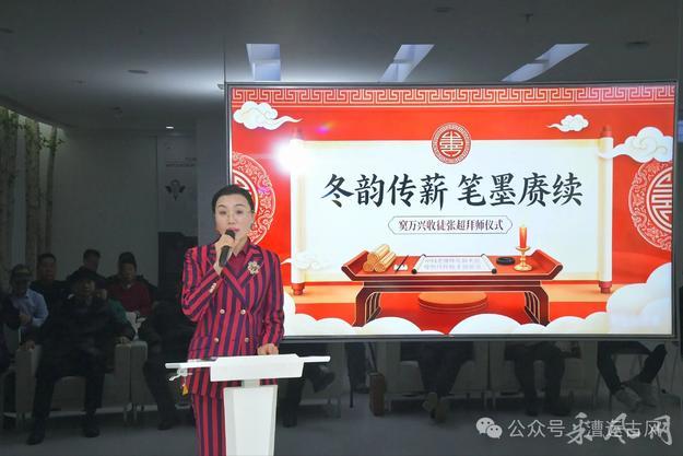 冬韵传薪,笔墨赓续。十二月隆冬,著名书法家窦万兴收徒张超拜师仪式在北京举办,由华夏文化艺术促进会素质教育委员会副秘书长赵春梅主持,各界嘉宾齐聚见证这一书法文脉传承雅事。仪式上,主持人介绍师父窦万兴。其深耕笔墨数十载,德艺双馨,精研诸体书法,作品兼具古韵与时代风貌,屡获殊荣,教学造诣深厚。他恪守“传艺先立德,授技先授心”初心,深耕传承,培育众多人才,获业内认可。