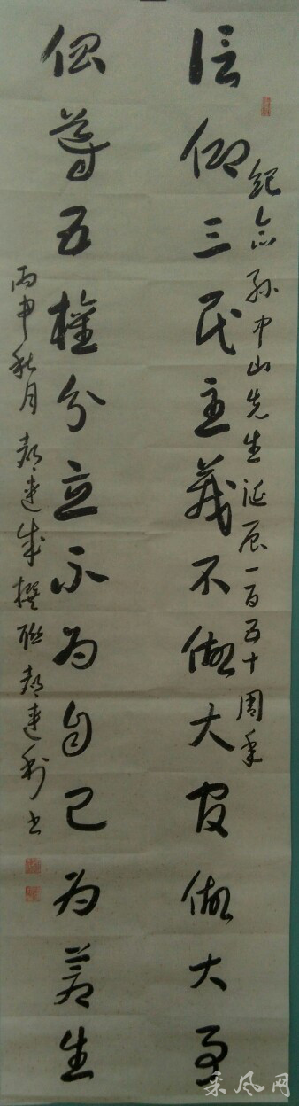 看到此处:让我想到了两个月前,帮郝连利给中国孙中山纪念馆搞的纪念孙中山先生150周年书画大赛活动中所写的对联:
