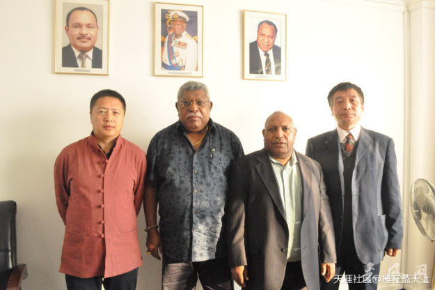书法家秦国仁左1 记者郝连成右1 与 巴新驻华大使梅罗左2和驻华公使