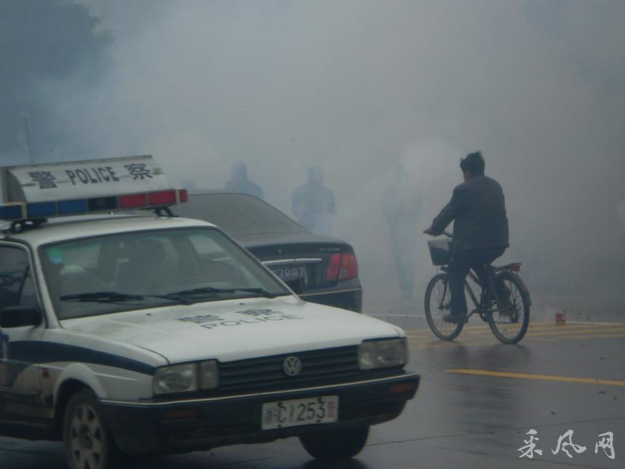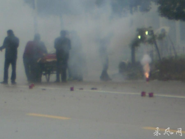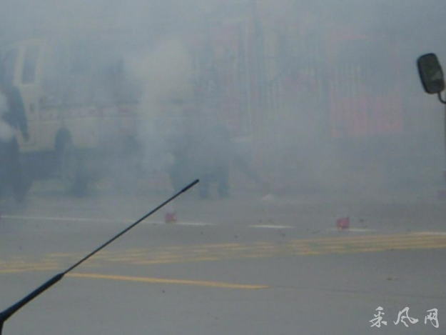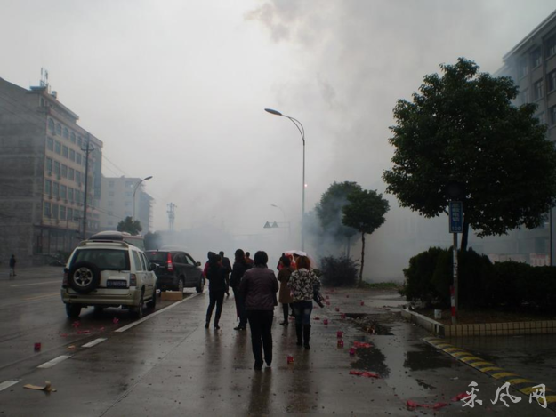 就是在这样繁忙的路边,从昨天下午到今天下午连续两天有人用小车拉一车的响炮,边摆放边点燃,一时间炸声四起,硝烟弥漫。人们都不知发生了什么事。我凑过去拍了几张照片,但是由于太远,硝烟太大,也看不出什么效果。