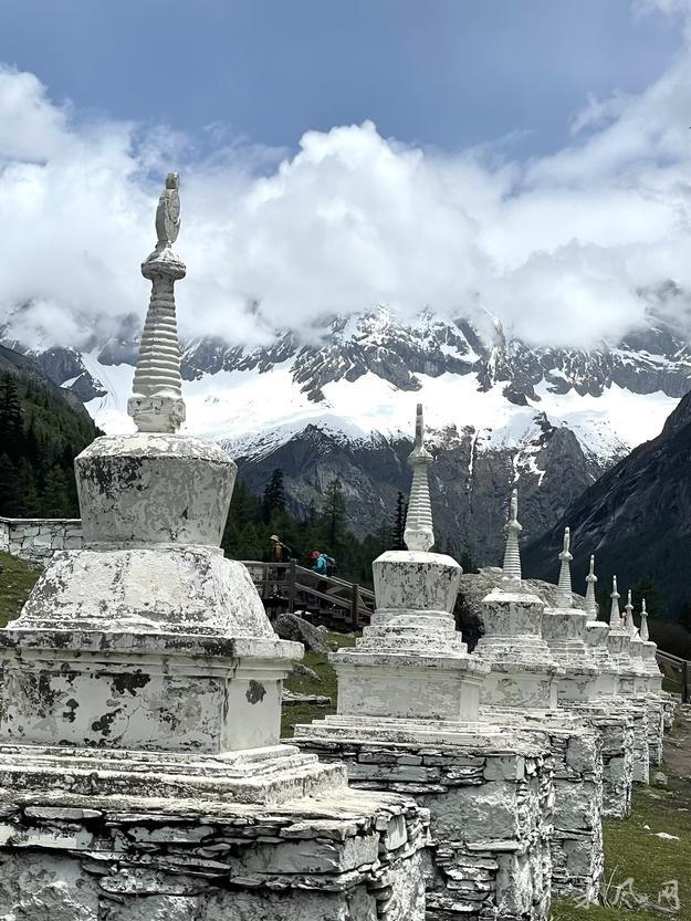 佛塔银峰下,经幡碧草边。