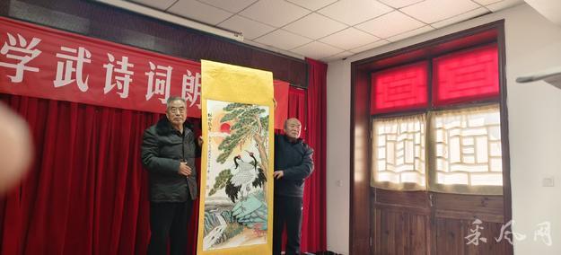 河沙镇南街老支书解振京同志主持会议,采风会员们踊跃上台展示才艺,如朗诵、歌唱、绘画,书法等原创作品。最后进行了赠书仪式并合影留念。