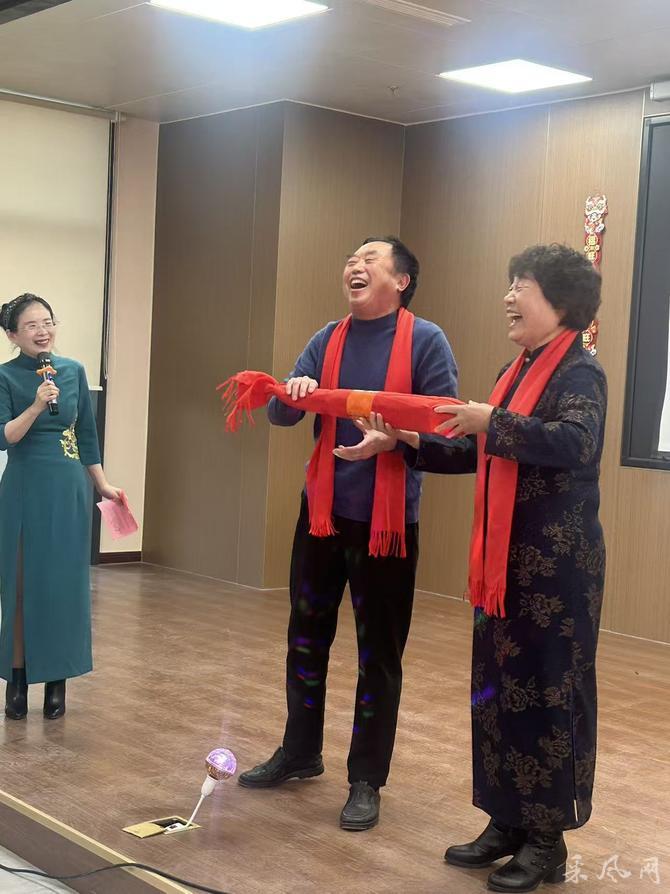 随后,文艺汇演在诗歌朗诵表演中拉开帷幕。节目形式丰富多样、精彩纷呈,充分展现了学会会员的多才多艺与文艺情怀。歌曲演唱、古琴演奏、京剧表演、作品诗朗诵、舞蹈、三句半、讲故事、航拍作品等节目轮番上演,既有经典曲目重温,也有原创作品展示。原创歌曲《一路芳华》旋律悠扬、歌词真挚,唱出了采风人踏遍山河、捕捉美好、传递文化的执着追求;古琴演奏《归来》曲调空灵、意境悠远,似天籁之音;京剧片段韵味悠长,字正腔圆的演唱展现了中华传统文化的博大精深,让现场观众沉浸在浓郁的文化氛围中。几个深情的诗朗诵节目,将观众带入优美的意境;《打靶归来》合唱中,演唱者精神饱满、意气风发,用嘹亮的歌声诠释了退役军人“退役不褪色、初心永不忘”的责任担当与豪迈气概,引发全场强烈共鸣。二重唱《长江之歌》歌声嘹亮,将观众带入江河奔涌的豪迈气势之中;独唱《传奇》《莫斯科郊外的晚上》婉转悠扬、韵味十足,让观众沉浸在优美的旋律里;舞蹈《希望》舞姿轻灵,将观众带入悠远静谧的意境;《三句半》表演幽默风趣、接地气,台词诙谐生动、动作传神,引得现场满堂欢笑,将欢乐氛围推向高潮。航拍作品《美丽河北》让观众在云端邂逅燕赵大地的自然之美与时代风华,为联欢会呈现了一场视觉盛宴。张炳吉与周喜俊互赠新春礼品时,温情互动的场景暖意融融,更将整场演出推向顶峰。各节目表演期间,现场不时响起阵阵掌声与欢乐的笑声,联欢会还穿插了抽奖等环节。最后,全体人员齐声合唱《歌唱祖国》,激昂嘹亮、饱含深情的歌声响彻全场,本场迎新联欢会在嘹亮的歌声中圆满落下帷幕。联欢会由学会副会长万文丽主持。