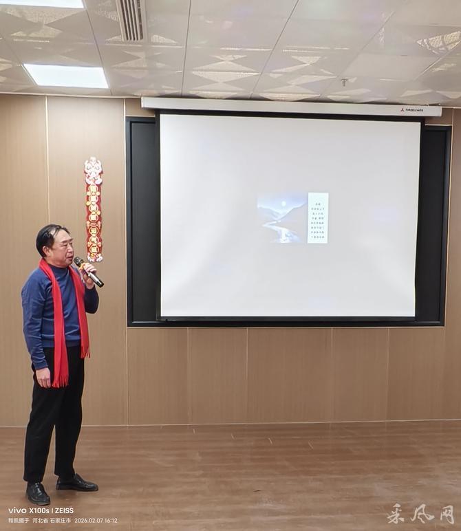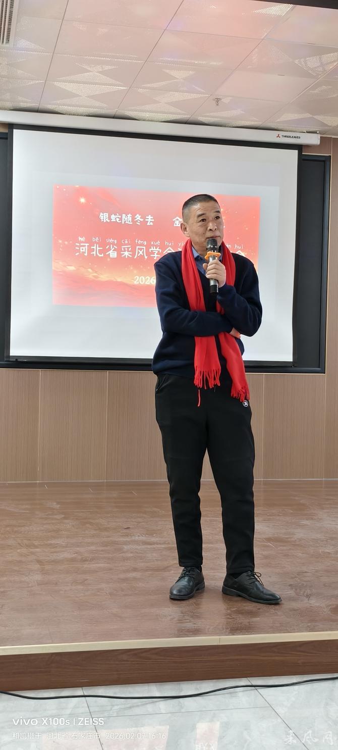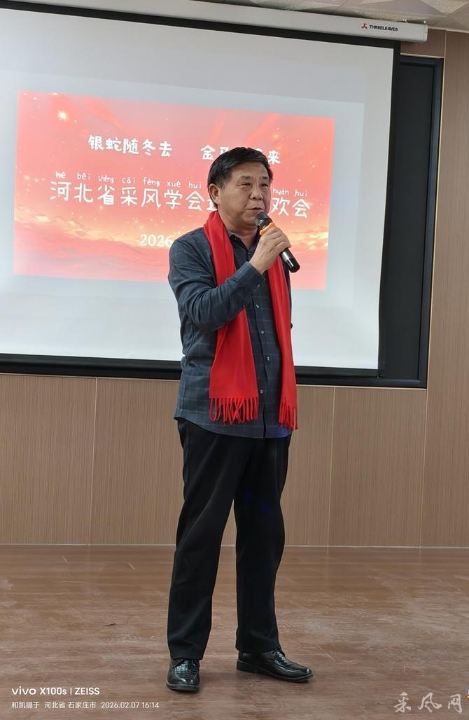 联欢会现场暖意融融、氛围热烈,处处洋溢着喜庆祥和的新春气息。联欢会开始前,河北省采风学会党支部书记张炳吉发表讲话,回顾了过去一年学会在采风创作、文化交流、人才培育、红色文化传承等方面取得的丰硕成果,强调每一项成就都凝聚着全体会员的辛勤付出与不懈坚守。他对学会2026年的工作提出发展规划,鼓励全体会员在新的一年里深入挖掘燕赵大地深厚的文化底蕴,聚焦时代发展脉搏,创作出有高度、有深度、有温度、有厚度的优秀作品。