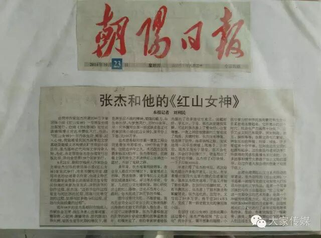 这洋洋洒洒的120万字长篇小说《红山女神》问世后,在中国文坛引起了轰动,大家都赞誉张杰是“文坛铁人”。台湾最有影响、最有知名度的收藏家、资深记者、书法家洪锡铭老人怀着海峡两岸的深情和同胞的厚意,为小说《红山女神》写出了一篇情洒华夏、催人泪下的大序。媒体资深记者、文学评论家,也是张杰的老师梁海暄说,张杰不是专业作家,也不是考古和历史工作者,病退前就是一个企业的宣传部长,但他以崭新的人生态度,傲视困难,如醉如痴、坚持不懈,用现代语言,生动地展现了远古人们的生活和文化壮美画卷,把距今5500年前至8000年的古国历史和红山人的生活图景形象地呈现给广大读者,这是对红山文化的艺术诠释,对红山文化的历史探索做出了巨大的贡献。
