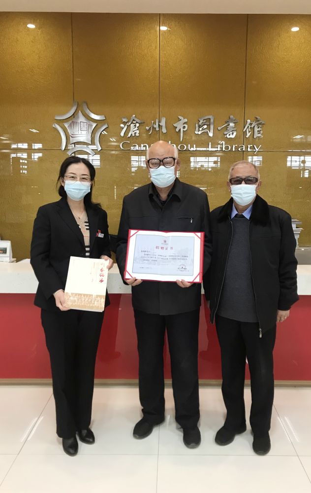 在捐赠仪式上,吴凤媛副馆长代表沧州市图书馆向韩焕峰颁发了捐赠荣誉证书。她说,图书馆篆刻方面专业书籍极少,韩老师的捐赠丰富了我馆的馆藏,为读者提供了新的知识信息和篆刻知识,并能欣赏到沧海印社的精美篆刻作品。