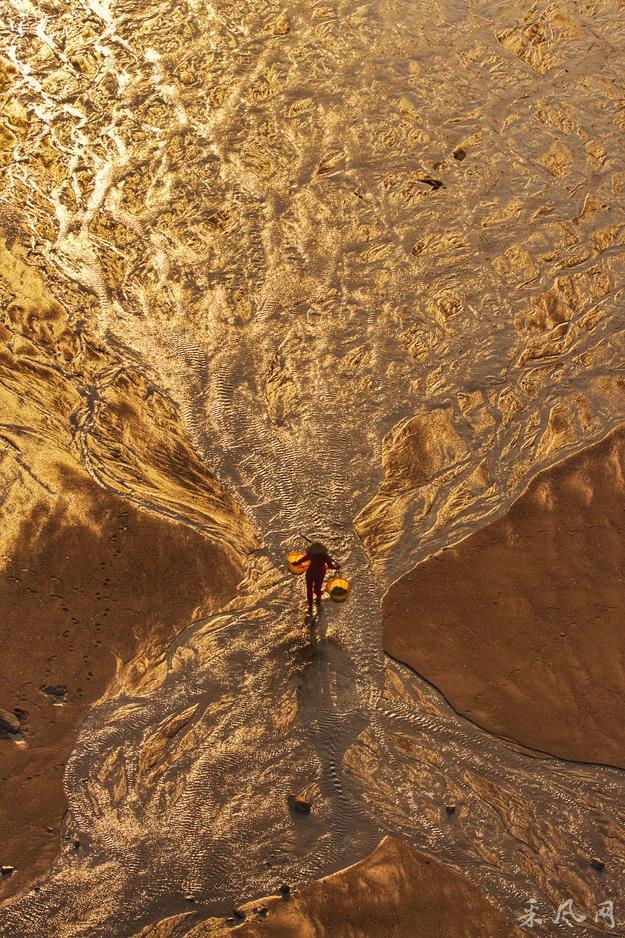 1. 意象贴合度高:首句“一片金箔映晚霞”直接呼应画面的“金色”基调,用“金箔”比喻波光粼粼的海面,既具象又高级,瞬间将视觉上的光泽感转化为文字质感;“小船漂荡水上家”则点出海湾中的关键元素,赋予小船“家”的温情,让静态画面有了生活气息。