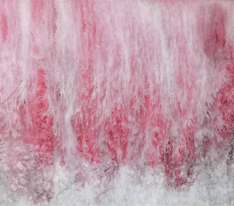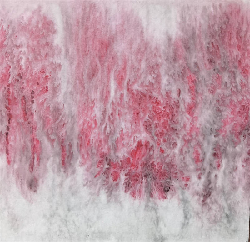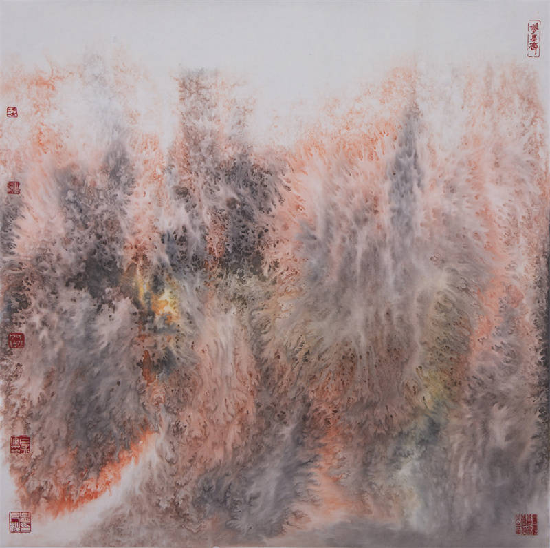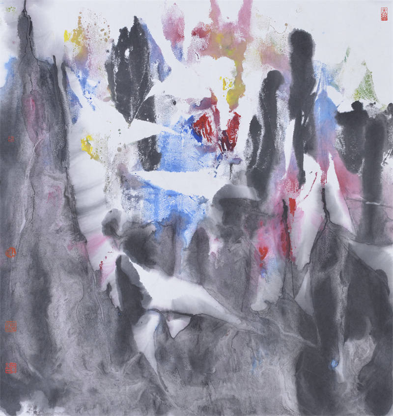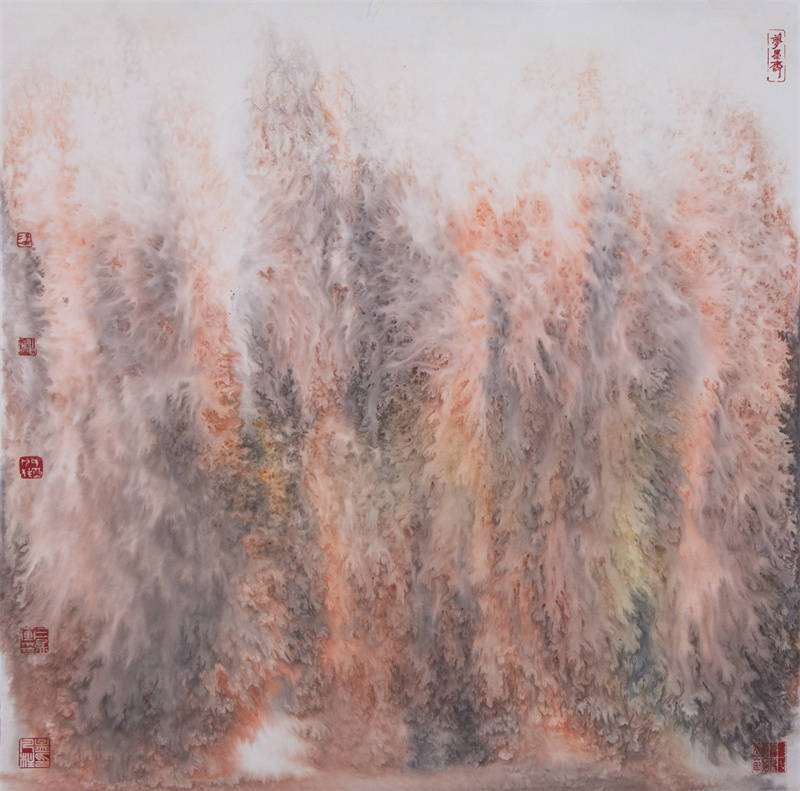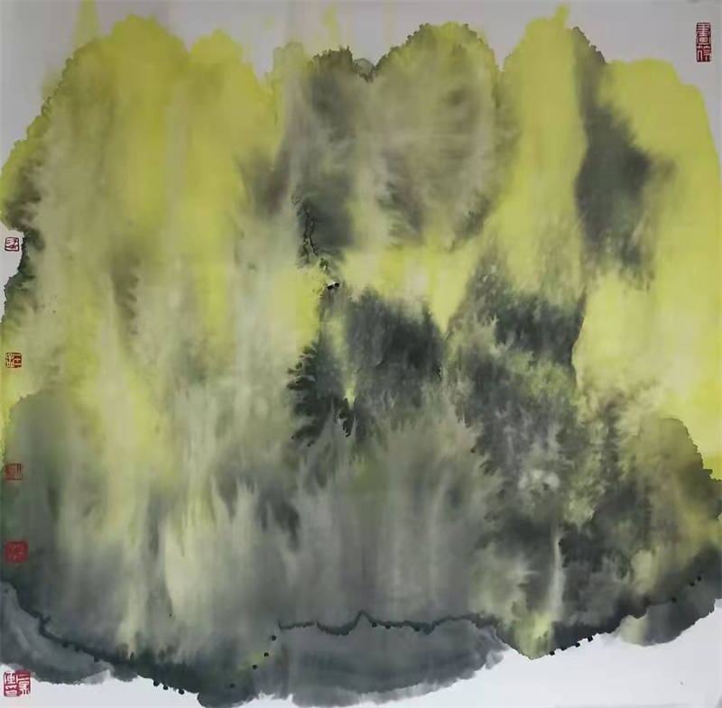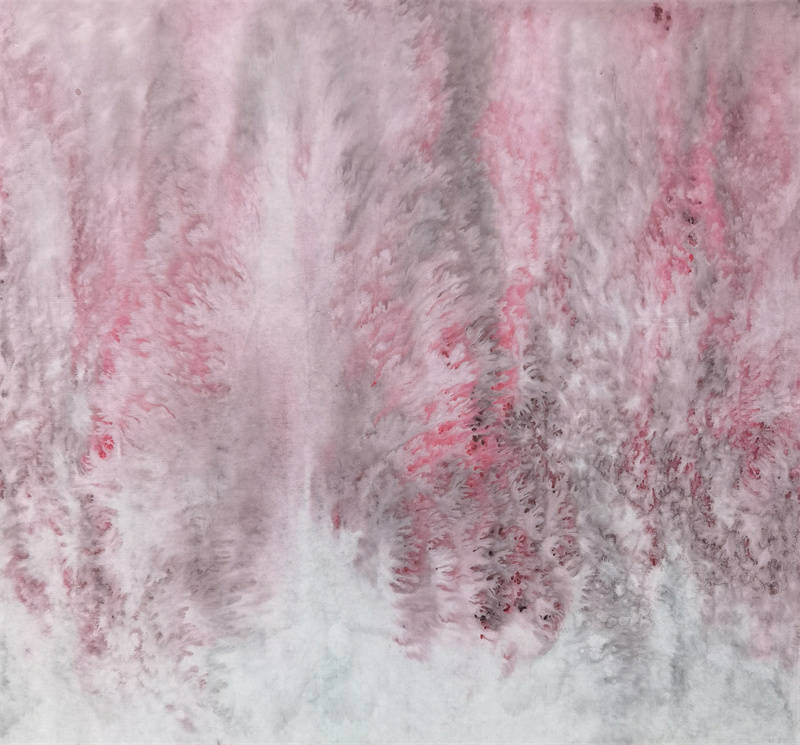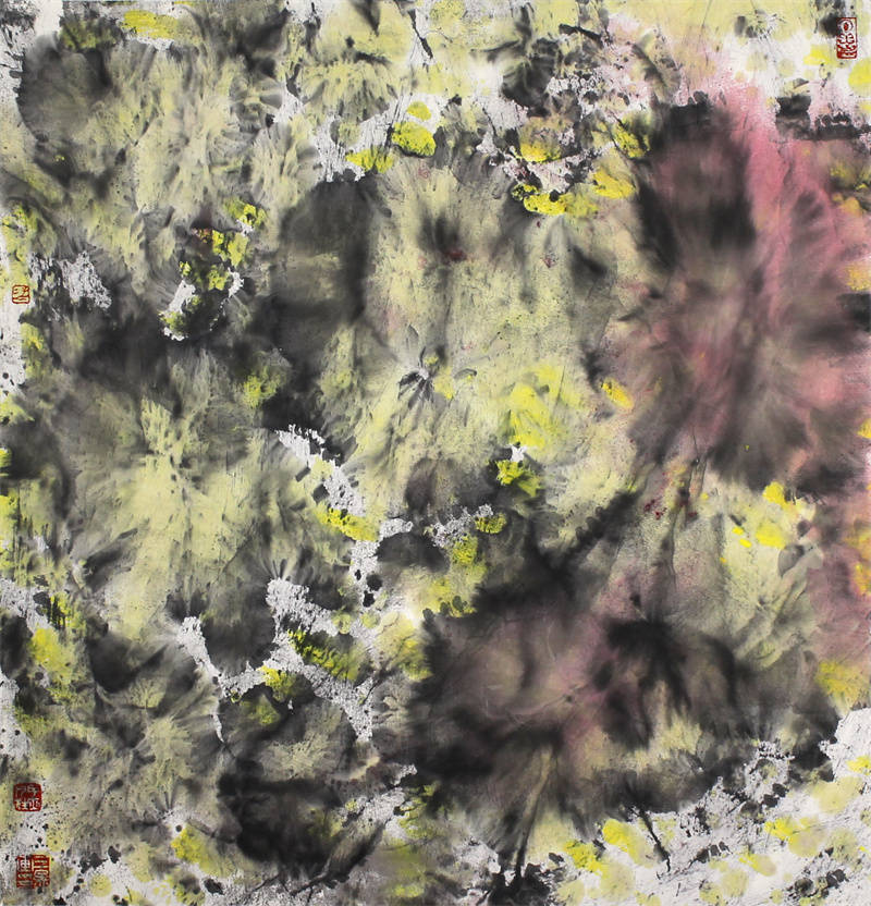 其画尽其自我之状态,纸性,墨情,彩韵各得彰显,笔墨纸情各有其态,又相交互溶,得之以梦幻中的光影,其炫,其美,其雅,可见之于生活,又或是三孟的梦。