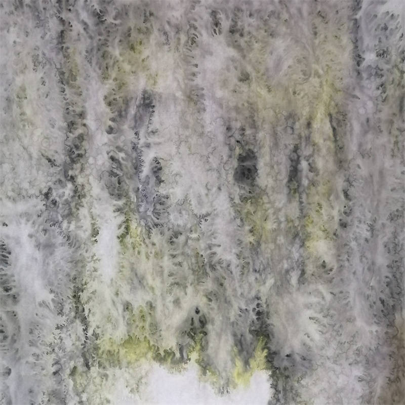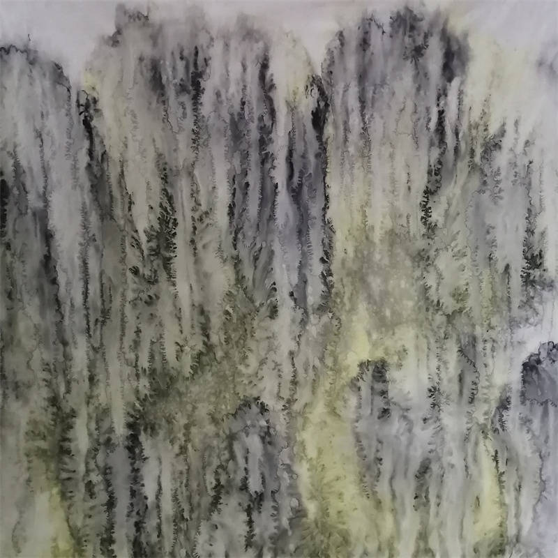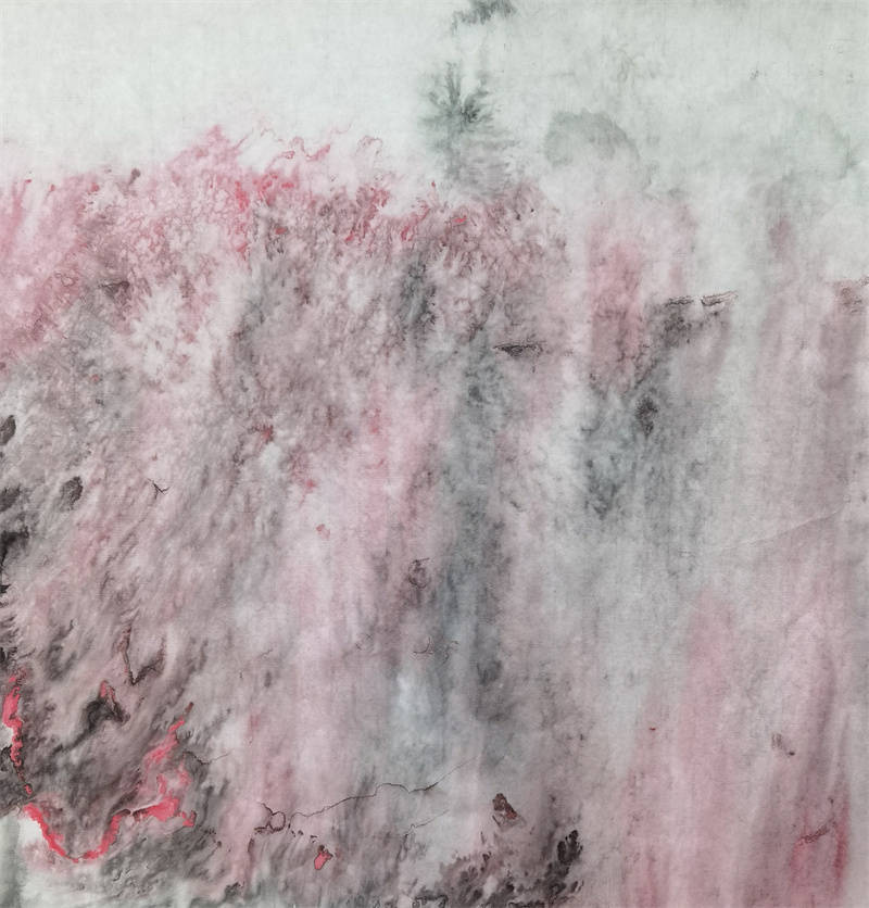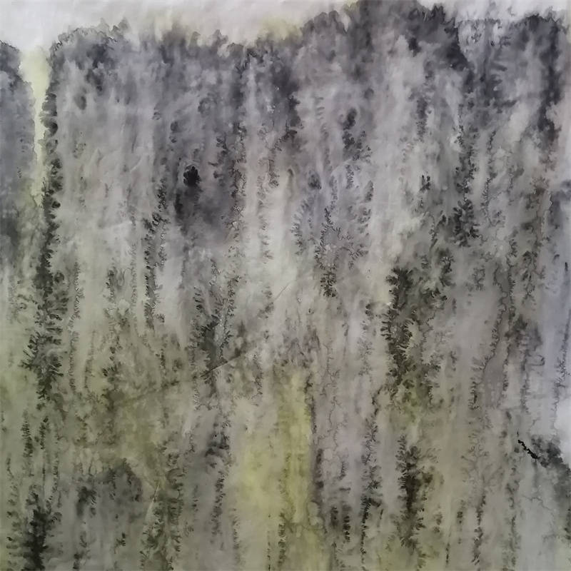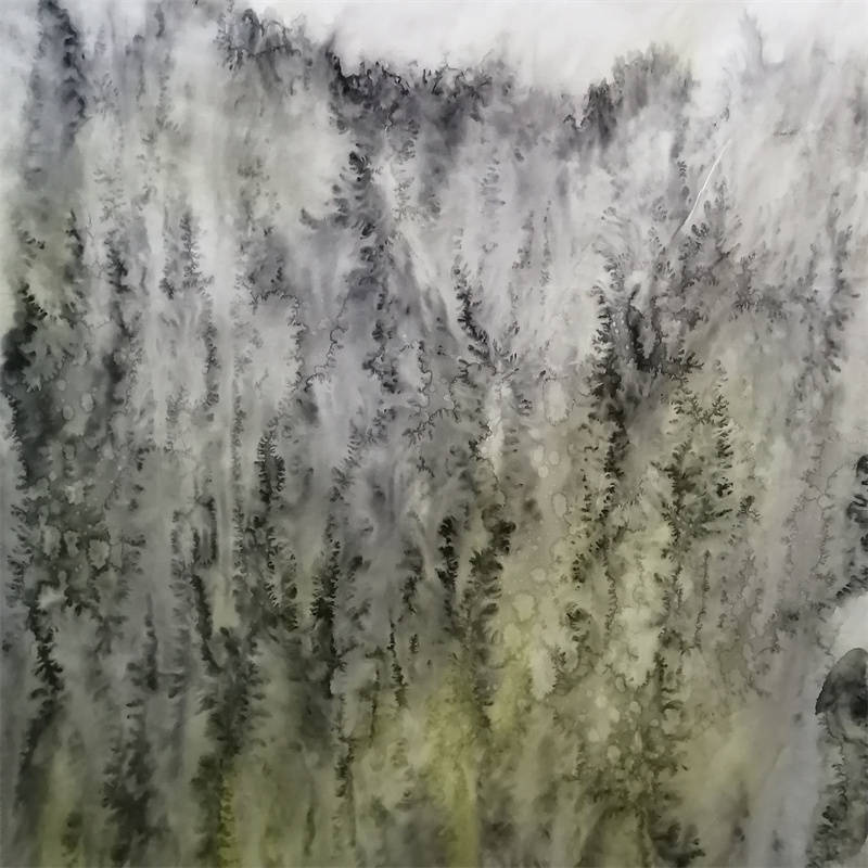 三孟的彩墨作品,有笔底,有丘壑,有笔间生造化的感觉了。远眺,近观,苍润清旷,诗情浓厚,意境幽远。其色随水,水随笔,笔随意,色水间自然相溶,笔墨中虚实相生。丹青辉映,笔彩风流,得温雅而自在。写境与写意,绘形与抽象,得妙苍穹,墨神韵,或言笔墨尽其自然也。