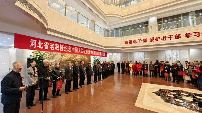 本网讯(王浩报道)11月3日,由河北省老教授协会和河北省老干部活动中心主办、河北省老教授协会书画院与美术专委会承办的“河北省老教授纪念中国人民抗日战争80周年书画展”在河北省老干部活动中心开幕。河北省有关厅局、河北省老教授协会、书法家协会、美术家协会等单位的领导、专家,老教授协会书画家,书画爱好者等200余人参加了此次活动。河北省老教授协会秘书长徐将林主持开幕式。