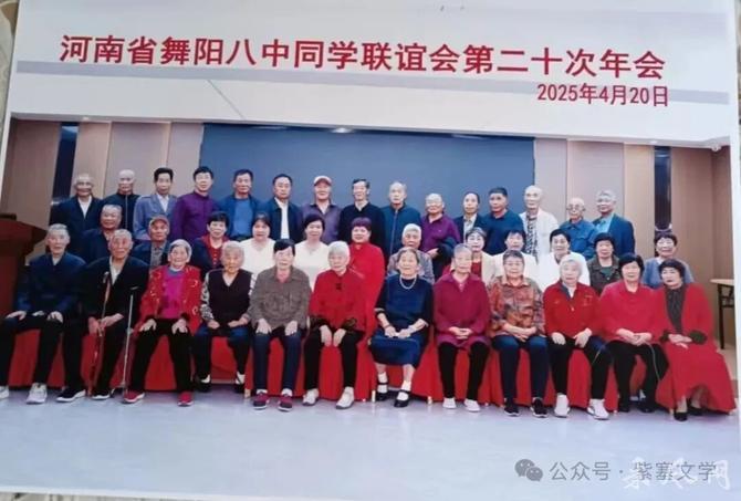 第二十次年会“舞阳八中同学联谊会——年会”,是我丈夫宋占举和我们的班长王国盈及朱乃范、吉天祥等同学,于2005年在大宋村我家发起的。二十年来,我们曾在姜店乡、马村乡、舞阳县、叶县、舞钢、漯河、平顶山、许昌、洛阳、安阳、湖北的仙桃市等地都举办过年会。