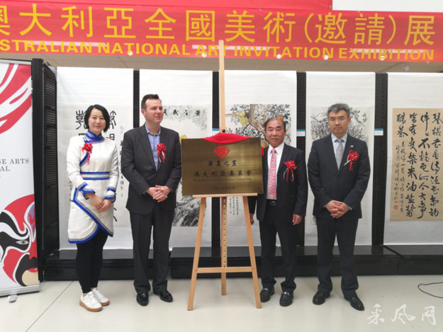 展出开幕式上,“华夏之星”澳大利亚委员会同时揭牌成立。中国书画报华夏之星艺术中心主任任宇等中国书画家代表团一行赴悉尼出席活动。