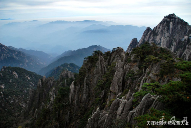 王东的写诗灵感与摄影兴趣有时是相约而来。拍七星峰时,正是暮色苍茫,乱云飞渡,一点残阳的时候。王东前景取山峰突兀逆光画面凝重,让人感觉雄壮巍然。远天一丝光亮,让人升起一些向往,总想把目光磨锋,再削去些山崖,让人眼界更加辽阔。好在左角的一大片留白,让读者有了更多的想象空间。回来后,王东依然觉得意犹未尽,有话要说。半杯酒沉吟,几支烟踌躇。终于一气呵成了60行长诗:《男人·····英雄》。