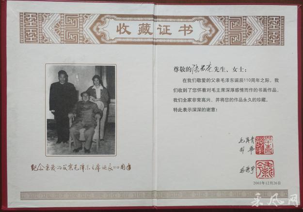 张君亮的书法也受到了当代各方面的关注。特别是军队里的很多将军都喜欢收藏他的作品。在毛泽东主席诞辰一百一十周年时,张君亮应毛泽东儿媳邵华之邀为之写了一幅作品,被毛岸青和邵华一家收藏。毛岸青、邵华、毛新宇亲笔签名给他来信表示感谢。同时还给汇来了二千元钱。张君亮把钱退了回去。他说我是怀着对毛主席他老人家的一片真情写的。哪能收钱。