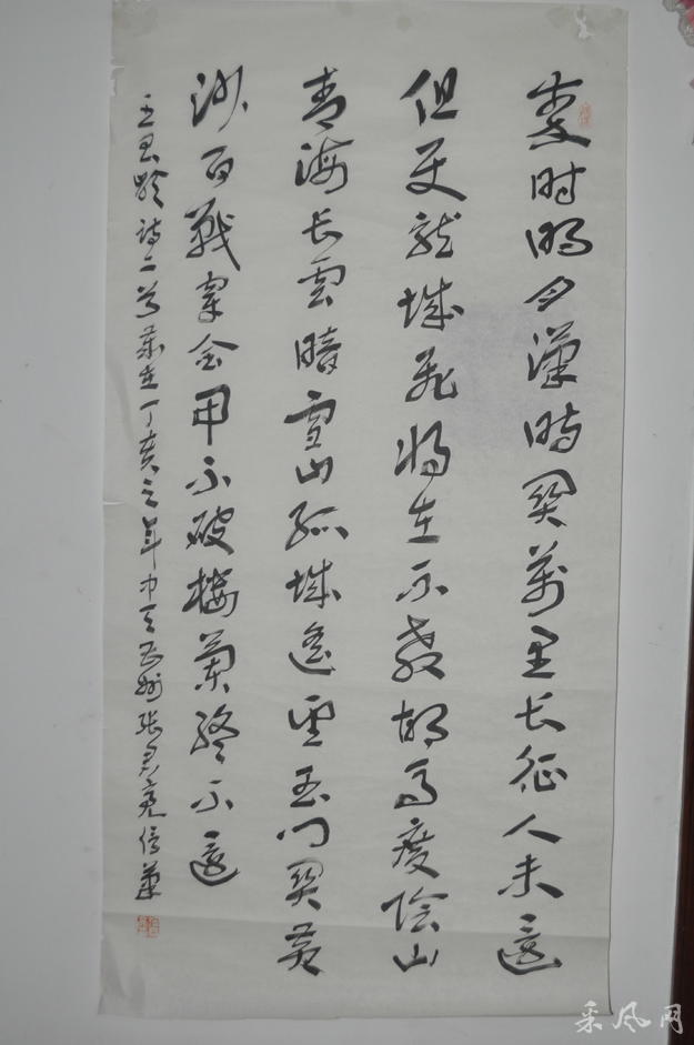 现在张君亮的所在部队整编安排他退养,他每天除持之以恒地写几百字书法外,就是到楼下的小园里耕耘他那几垄茄子,辣椒,和西红柿。访问结束时他领我看了他的菜园,此时正是刚过立秋时节,天很蓝,云也很白。