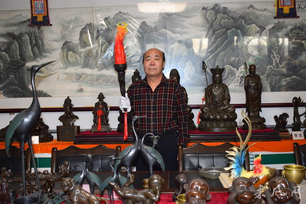 青铜与漕运本无直接因缘,可在通州这片土地上,它们共守一方水土,同怀一份深情。运河千年流淌,波光照映漕船帆影;青铜千载淬炼,锤凿之间熠熠生辉,镌刻出一个民族的礼序与魂魄。一水润城,一器铸魂,刚柔相济,动静相依,这便是通州深厚的文化根脉。李万祥先生,正是运河之畔、燃灯塔下守护这炉青铜火种的人——少年时在故宫与古铜初见,便一眼倾心、半生相随。他不恋仕途安稳,不慕世间繁华,毅然投身烟尘与炉火之间,承续“古铜张派”的古老技艺。失蜡法百道工序,道道不苟;国宝复刻千般细节,件件虔诚。你可曾想到,北京国际饭店前那尊气势雄浑的青铜大鼎,便出自他及团队之手,三足鼎立,镇立京华;你可曾想到,运河之畔的燃灯塔历经岁月风雨,塔铃零落,是他潜心补铸,让千百枚风铃重归檐角,风过处清音悠远,一响,便是千年……他以匠心修复古物、复原国宝重器,让散佚的历史重归完整;他研创的青铜透光镜,光影流转,映运河古塔千年风姿。