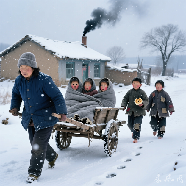 初三的早晨,不用母亲催促,兄弟姐妹就会自动穿好过年才穿在身上的新衣,匆匆的洗脸,匆匆地吃饭,然后等待母亲出发的指令。母亲则要准备给姥娘的礼物。这个礼物就是一篮子馒头。母亲把馒头放进竹篮总要认真地一个一个地数,这是因为馒头的数量只能是双数而不能是单数,一般为20个或者22个。装好馒头,母亲用一个包袱包住篮子,然后在篮子的上端打个结,交给我们提着走。我们家原来没有双轮车,母亲带我们走娘家都是徒步,幼小的孩子被她抱在怀里,大一点的孩子则跟在她后面,十里长路,云低天寒,需要一步一步度量,累了就地休息一会儿接着再走;遇到弯路就撇开它、从耕地直插过去以节省体力。后来家里有了双轮车,孩子们坐在车上,母亲拉车行走。寒风雪地,北风呼啸,她弯腰曲背,奋力拉车,手冻得通红,头发被吹得凌乱,她却从不说一句累,也不埋怨只顾在单位值班却不回家过年的父亲。若是赶上生产队里方便,我们就能借到牲口车,就会省去母亲拉车的力气。但生产队只出车,不出赶车人,用车需要自己赶车。母亲不善赶车,说是赶车其实她只是紧紧攥着牛缰绳引导着老牛前行,并不时地回头叮嘱我们坐好,不要打闹,生怕摔着我们。坐车虽然省去孩子们的体力,但坐在硬邦邦的无棚车上,常常被冻得四肢僵硬,遇到颠簸路段,屁股被折腾得生疼。为了御寒母亲常常拿来被子把我们围住,有时把车停在途中让我们下来活动筋骨。为了那份亲情,为了心中的幸福,我们常常淡忘十里路途的艰辛。