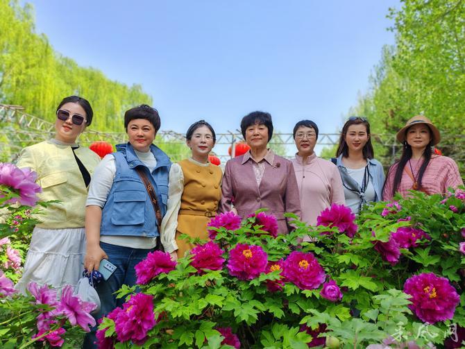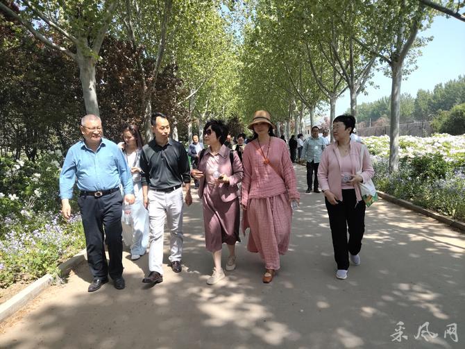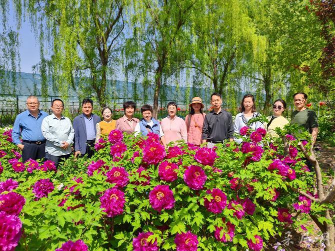 此次采风,恰逢牡丹盛开,花香四溢,采风团成员漫步千亩花海,亲睹千年汉牡丹芳容,醉赏满园国色天香盛景,探寻千年人文底蕴。大家对牡丹园宏大规模与丰富品种赞叹不已,更为牡丹“衷心护主”的传奇典故、“异地不活”的高洁风骨深深动容;在赏花览胜中汲取创作灵感,在交流切磋中碰撞思想火花。